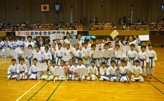 小学生~成年まで出場資格がある大会で形競技は小学生が二学年男女混合・中高生は男女別学年混合で行われます。